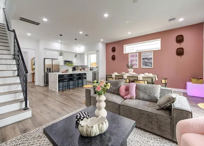 O Centro de Convenções George R. Brown está localizado a poucos quarteirões desta casa de férias de Houston, e a estação de autocarros School of Music fica a aproximadamente 5 minutos de distância do carro. Os destaques educacionais situados 2 km desta acomodação incluem a Universidade de Houston.